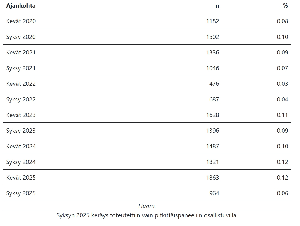 Taulukko 1: Vastaajamäärät eri mittauskerroilla